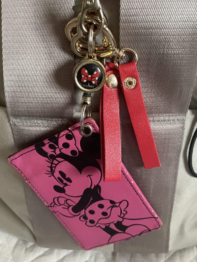 紙のチケットをもらう予定なので、数年前にディズニーランドで買ったミニーちゃんのカードケース