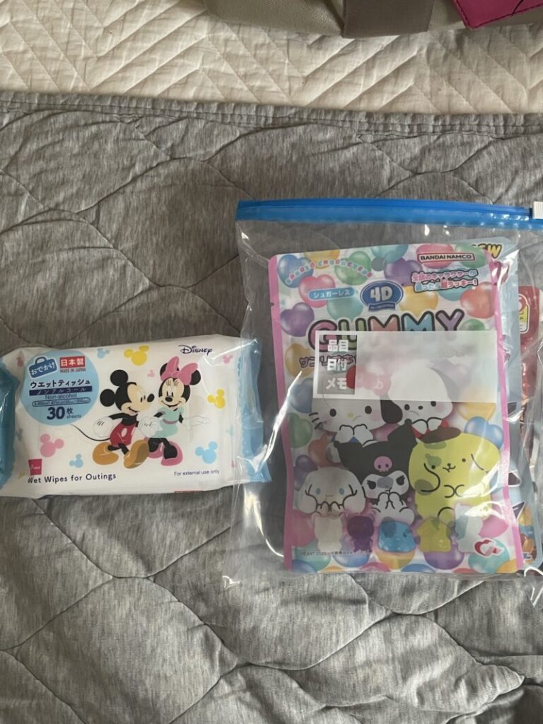 ウエットティッシュとちょっとしたお菓子(グミ)