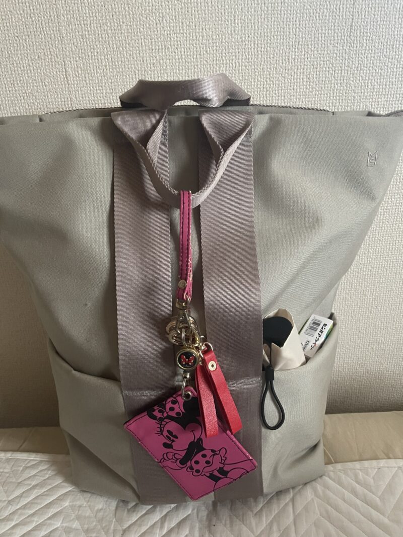 紙のチケットをもらう予定なので、数年前にディズニーランドで買ったミニーちゃんのカードケース
