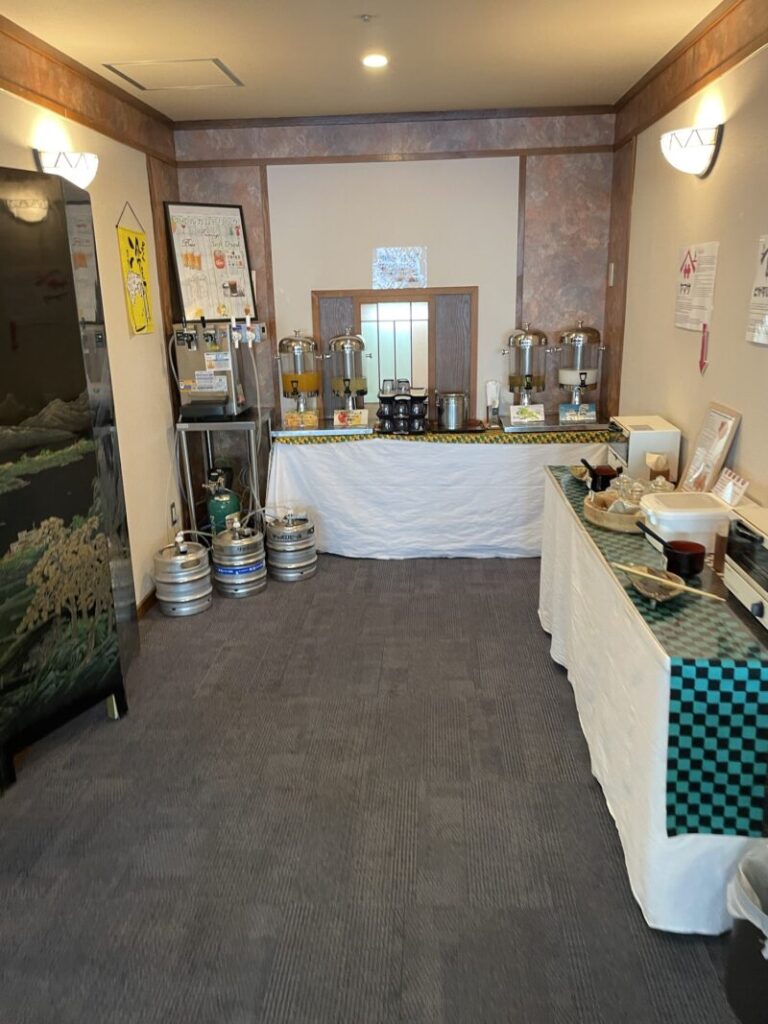 15時から17時までウェルカムドリンクと手焼きせんべいが作れるスペースがありました