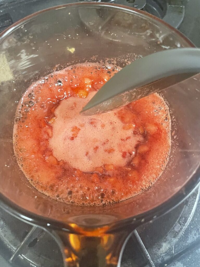 2.焦がさないようにヘラで混ぜながら煮詰める