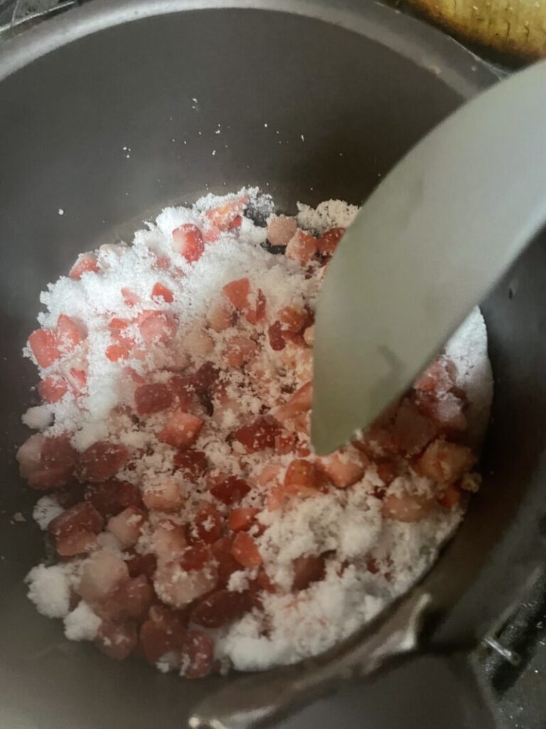 子供たちが寝たあとで、明日食べれる様にプリンとスコーンとイチゴジャムを作りました
